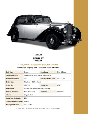 defined Bentley’s legacy. This lot cannot be exported out of India (payment only in Indian Rupees)