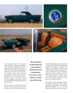The Sunbeam Motor Car Company restored 1960 example, painted in British