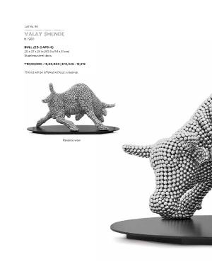 Lot No. 86 Valay Shende b. 1980 BULL (ED: 2 APS+8) 20 x 37 x 24 in (50.8 x 94 x 61 cm) Stainless steel discs ` 10,00,000 – 15,00,000 | $ 12,346 - 18,519 This lot will be offered without a reserve. Reverse view