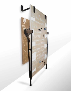 Acrylic, marble dust, iron crutches, iron brackets & gold