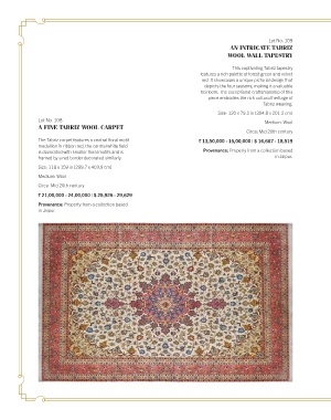 The Tabriz carpet features a central floral motif ` 13,50,000 - 15,00,000 | $ 16,667 - 18,519