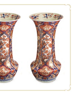A PAIR OF LARGE PORCELAIN IMARI VASES