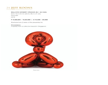 JEFF KOONS MONKEY BALLOON 9.8 x 15.4 x 8.3 in (24.9 x 39.2 x 21 cm) 0,000 16 6 , – 0 12 89 82 , Illustrated are 2 views of the presented lot. Provenance Property from a collection based in Singapore.