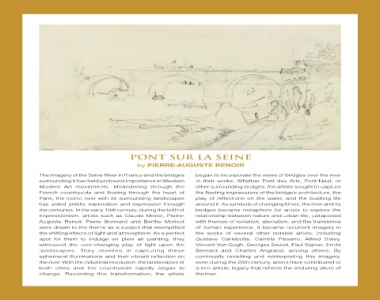 SEINE incorporate to began works. their surrounding other impressions fleeting reflections of symbols As it. around became bridges between relationship of themes experience. human several of works Caillebotte, Gustave Gogh, Van Vincent Charles and Bernard revisiting continually 20th the during legacy artistic rich river.