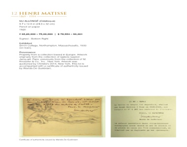 (Odalisque 0,000 75 0 , – Right originally from the collection of Galerie Gaston Knoedler & Co., Inc., New York. Artwork was Certificate of authenticity issued by Wanda De Guébriant.