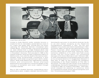 works, Warhol's several immortalise Among style. German such portraits, single a from for Beuys met First portraits death the after fundamentally recognised was Warhol consumerism, convey to sculpture social and Germany, educator sculptor,