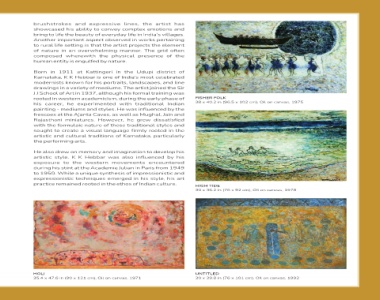 brushstrokes showcased life to bring Another life rural to in nature of composed 1911 in Born K Karnataka, modernists in drawings of School J J career, his - painting at frescoes Rajasthani the with to sought and artistic the performing arts. drew also He style. artistic to exposure his during While 1950. to expressionistic HOLI