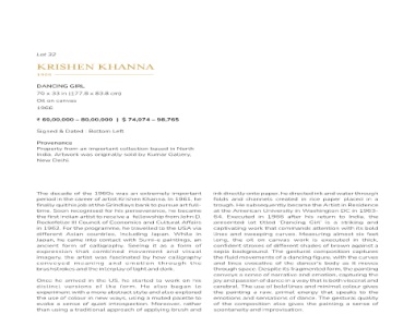 32 DANCING Oil on canvas 0,0 Signed & Dated : Provenance Property from an New Delhi. decade in Soon first Rockefeller 1962. different he ancient expression imagery, co n v e y ed he distinct experiment of use a using