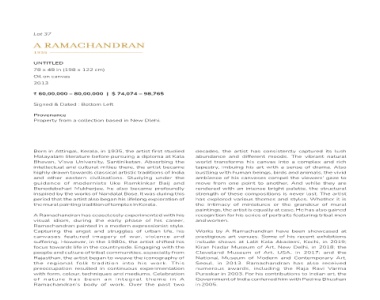37 UNTITLED Oil on canvas 0,0 Signed & Dated : Provenance in Malayalam Bhavan, intellectual other guidance Benodebehari inspired that Ramachandran Capturing canvases suffering. people Rajasthan, preoccupation form, natur e Ramachandran’s