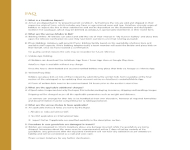 1: What is a Condition Report? A: All Lot are dispatched in its 2: What are the various Modes to Bid? A: Bidding Online: All bidders can select and add the lots of their interest in upon the relevant notification (in case they have been out bid in a lot that is being pursued). their behalf, once we have received a confirmation. For quality control reasons the calls may be recorded for future reference. C: Mobile App Bidding: All bidders can download the AstaGuru Ap