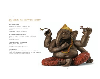 A) GANESHA GANESHA 16 x 9.5 Signed : Verso 0,000 – Provenance India. Artworks w