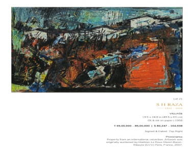 S H RAZA 2 -------192 19.5 x 24.8 in (49.5 x 63 cm) Oil & ink on paper – ,247 80 $ Signed & Dated : Top Right collection. Mathias-Le Roux-Morel-Baron- Ribeyre (S.V.V.) Paris, France, 2007.