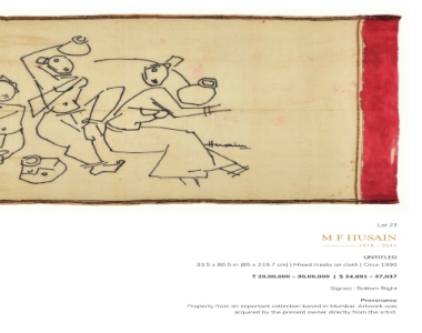 M F HUSAIN 191 --------------- | Mixed media on cloth | ,691 24 $ | 30,00,000 Signed : Bottom Right acquired by the present owner directly from the artist.