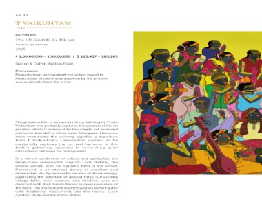 T VAIKUNTAM ------------------------------- x 82.9 in (1 1,5 – 0,000 : Bottom Right & Dated Property from an important collection owner directly from the artist. an is lot perfectly and informed is which life define that the importantly Vaikuntam's captures gathering, his between celebration composition his with dancer, eternal an in figure the attention the men, folks, hands their with instruments traditional cymbals, flute and the K