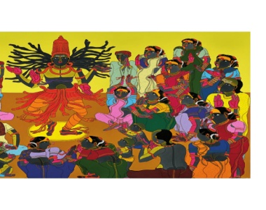 $ | 0,00,000 Hyderabad. Artwork was acquired by the present inspiring awe the captures the by rural in painting composition and joy the to opposed protagonists. culture of depicts dynamic dance aura an exudes around of and women, in folded the deity. The divine scene also showcases some figures like