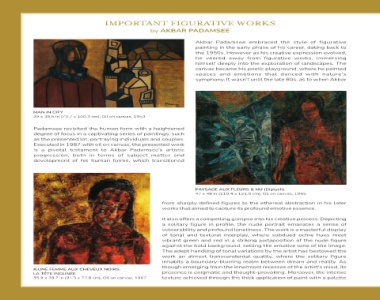 WORKS embraced Padamsee phase early the his as However from away the into poetic his emotions the until wasn’t NU & FLEURS 47 x 48 in (119.4 x 121.9 cm), Oil on canvas, 1965 the to figures works that aimed to capture its profound emotive essence. his into glimpse nude the where interplay, striking a the setting by variations tonal quality, transcendental realm innermost thought-provoking. thick the