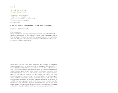 S H RAZA - 2016 FACTORY in (26 x 15 Watercolour on paper – 0, 000 Signed : Bottom Left a Dallas based company. years, watercolourist. to 1939 different the of from shift would was he Art gold a