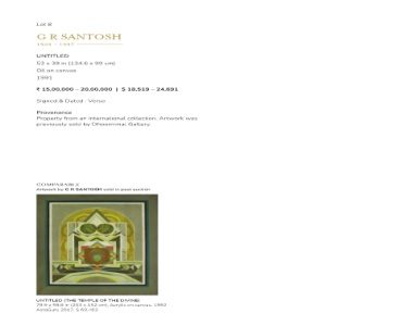 G R SANTOSH -------------------- 99 x 134.6 in ( 0,00,000 2 – 0,000 Verso Property from an international previously sold by Dhoomimal Gallery. G R SANTOSH TEMPLE (THE 203 x 152 in ( 69,463 $ , 2017