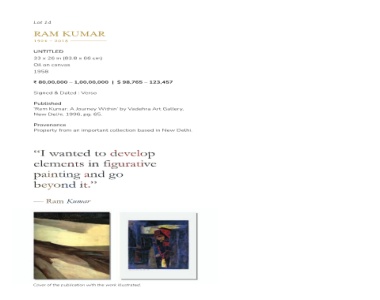 RAM KUMAR ----------------- - 2018 66 x in (83.8 1,0 – 0,000 : Verso & Dated ‘Ram Kumar: A Journey Within’ , pg. 1996 Property from an important collection Cover of the publication with the work illustrated.