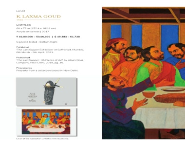 ----------------------------------- 182.9 x 152.4 2017 | on canvas 0,00,000 5 – Bottom 'The Last Supper Exhibition' at Saffronart, Mumbai, 6th March - 5th April, 2021. 'The Last Supper : 35 Pieces of Art' by Aleph Book Company, New Delhi, 2019, pg. 35. Property from a collection Cover of the publication with the work illustrated.
